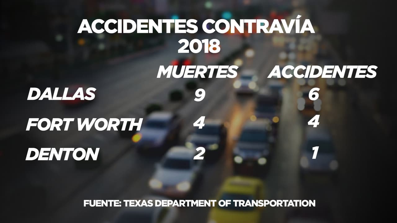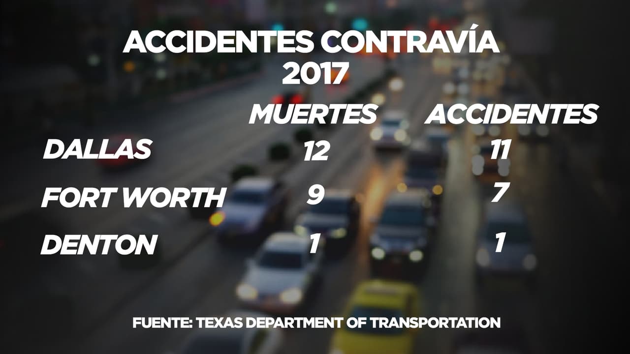 Autoridades en Dallas animan a la comunidad a tomar precauciones en las vías. La semana pasada se registraron en el condado, por lo menos, dos accidentes mortales debido a conductores en contravía. En lo que va del año se han registrado las siguientes cifras: