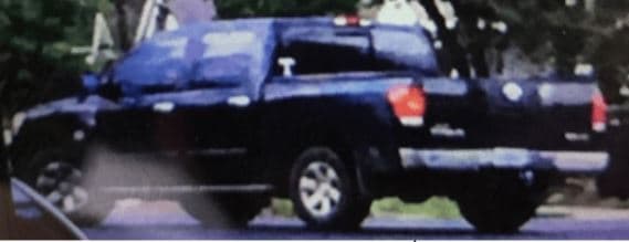 La camioneta de interés es descrita, por la autoridades, como una Nissan color negro. Agregan que quizás contenga un logo del equipo de los Texas Rangers en la ventana trasera.