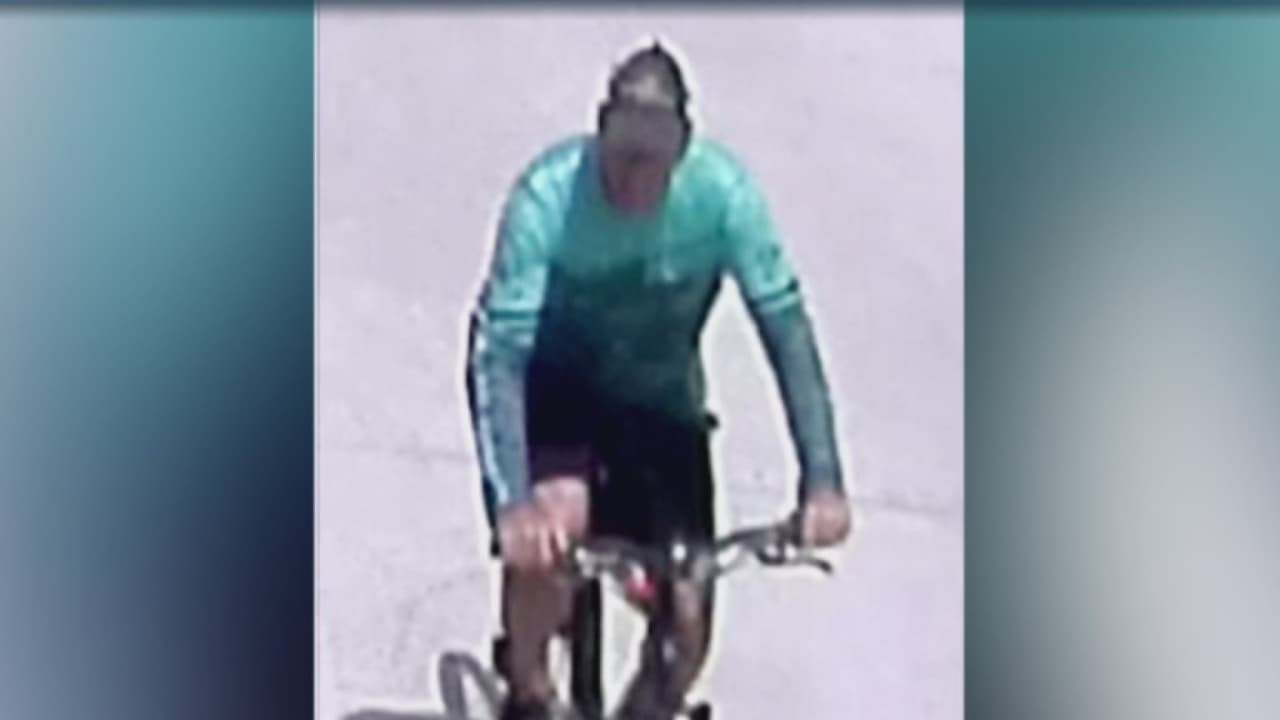 Una cámara de seguridad captó al hombre mientras circulaba por un parque mientras conducía una bicicleta. Las autoridades buscan al acusado para poder interrogarlo por lo ocurrido.