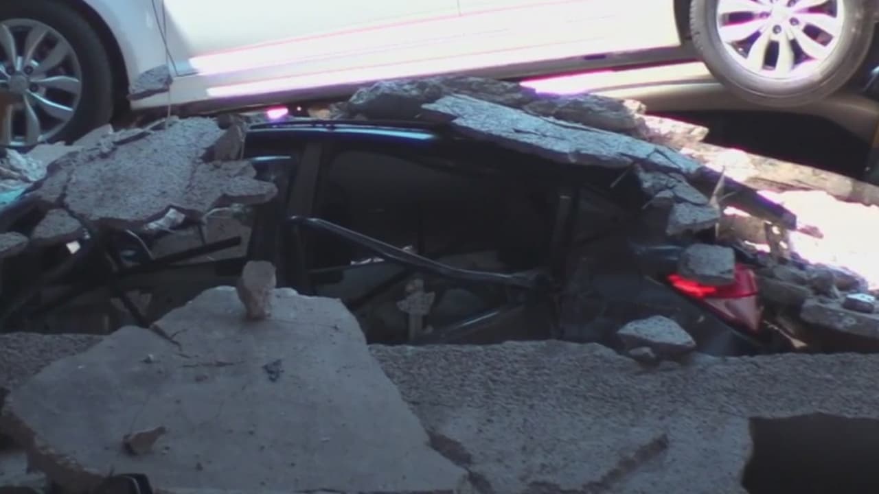 Bomberos buscan reforzar partes del estacionamiento colapsado en Irving para poder remover los vehículos