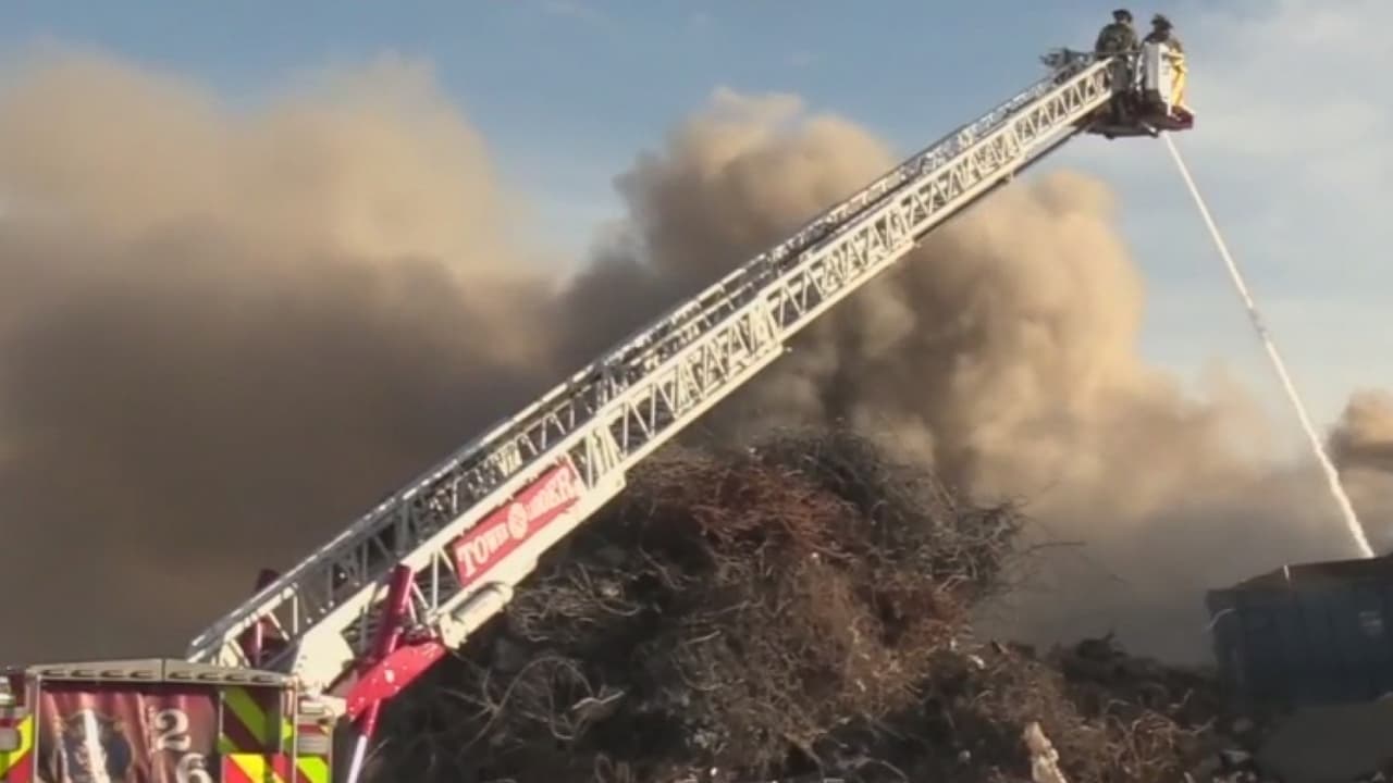 Bomberos luchan por apagar un incendio en un depósito de reciclaje en Dallas