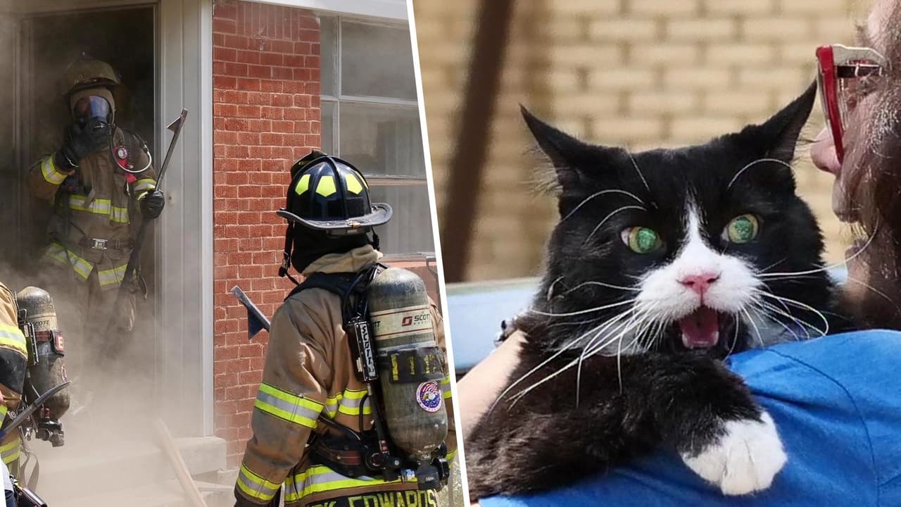 Bomberos rescatan a un gato atrapado en un incendio en Texas, mira las curiosas imágenes