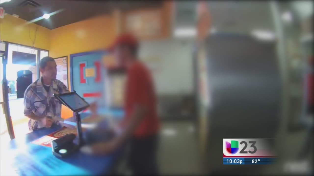 Es un hispano que ser robó el dinero de la pizzeria a punta de pistola. Pero todo quedó captado en video