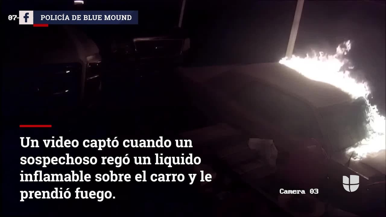 Buscan a sospechoso de prender fuego a un carro estacionado en una cochera en Blue Mound