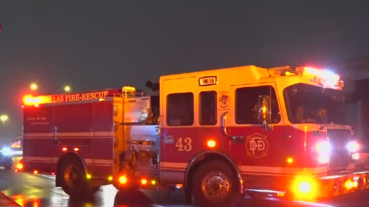 Camión de bomberos que asistía un accidente en la Autopista 35 termina siendo víctima de otro choque