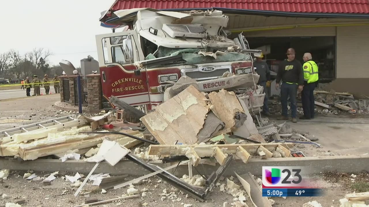 El impactante choque se registró en Farmersville cuando un mecánico conducía el camión de bomberos luego haber sido reparado y se impactó contra popular restaurante de hamburguesas 'Dairy Queen'