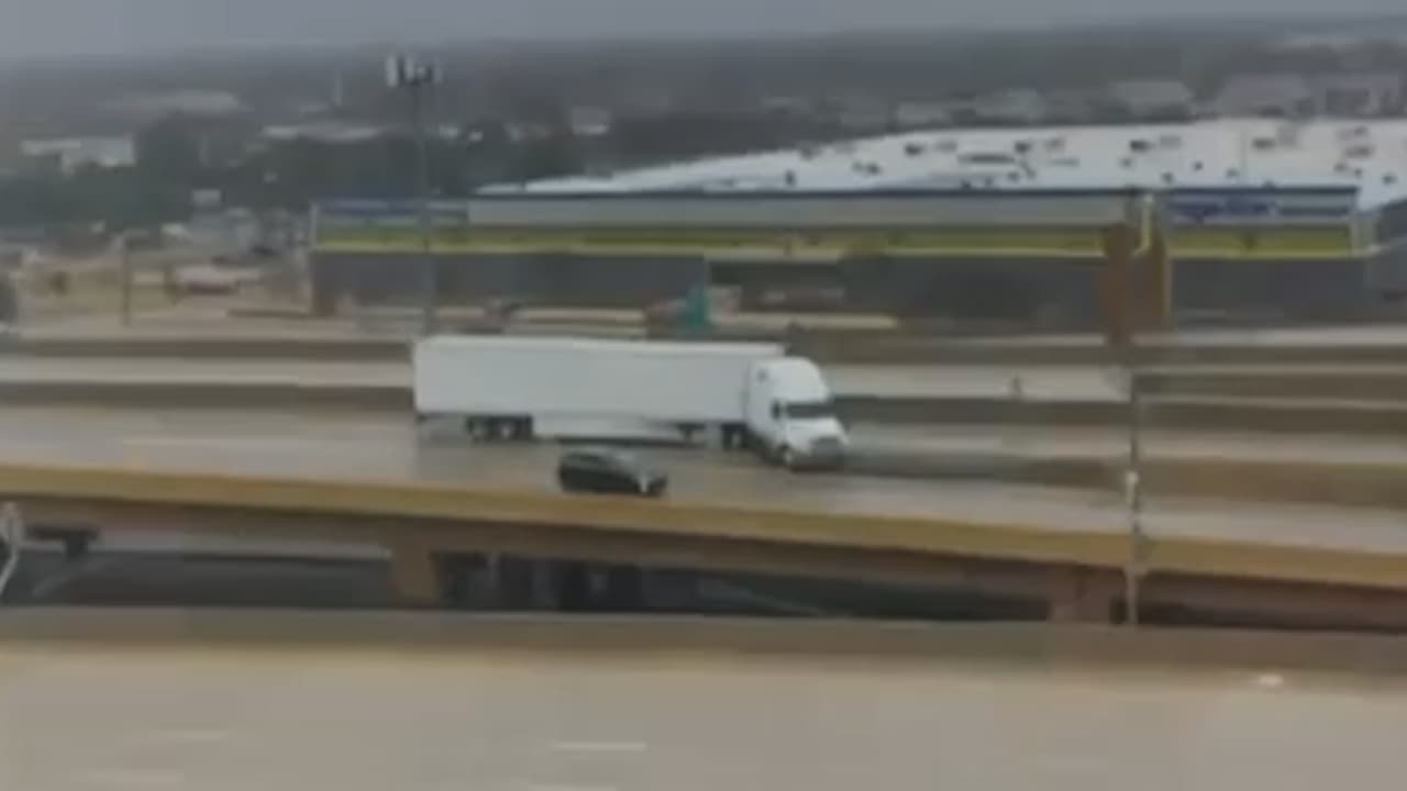 Camión de carga se desliza en hielo acumulado en autopista de Dallas; todo quedó en video
