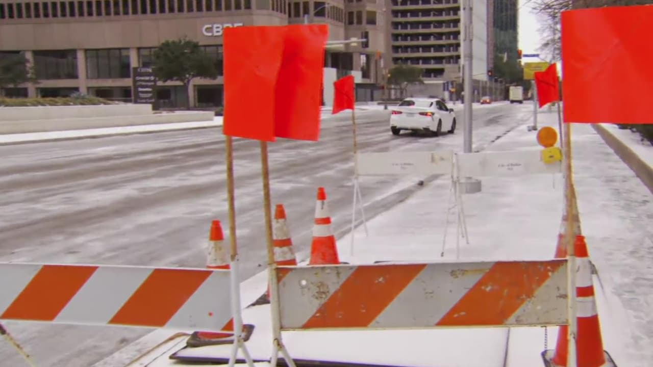 Capas de hielo en las vías, un riesgo para conductores y peatones: este es el panorama en el centro de Dallas