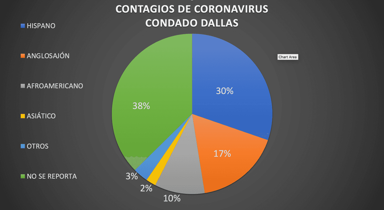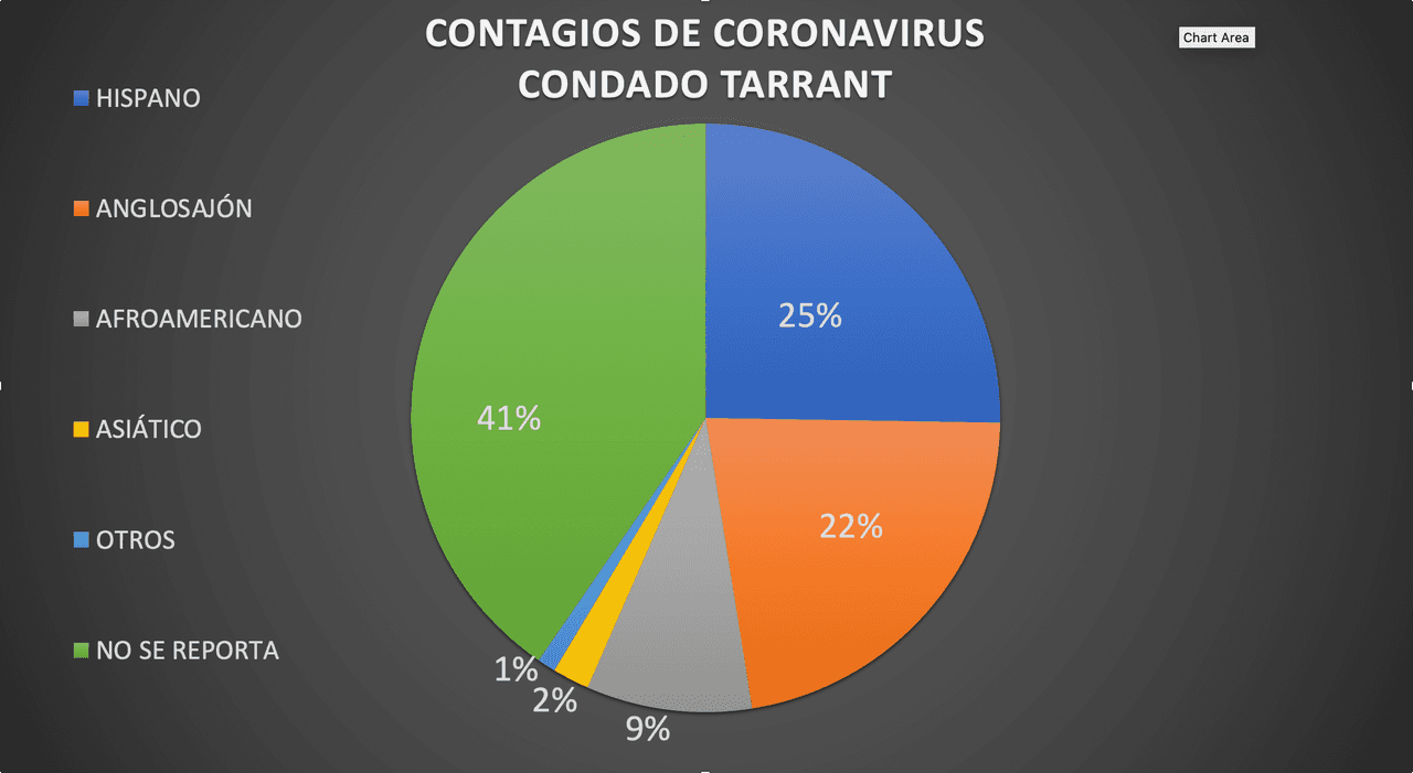 Y el porcentaje de Hispanos contagiados son el 30% en el condado Dallas. Mientras que en el condado Tarrant, los Hispanos representan el 25%.