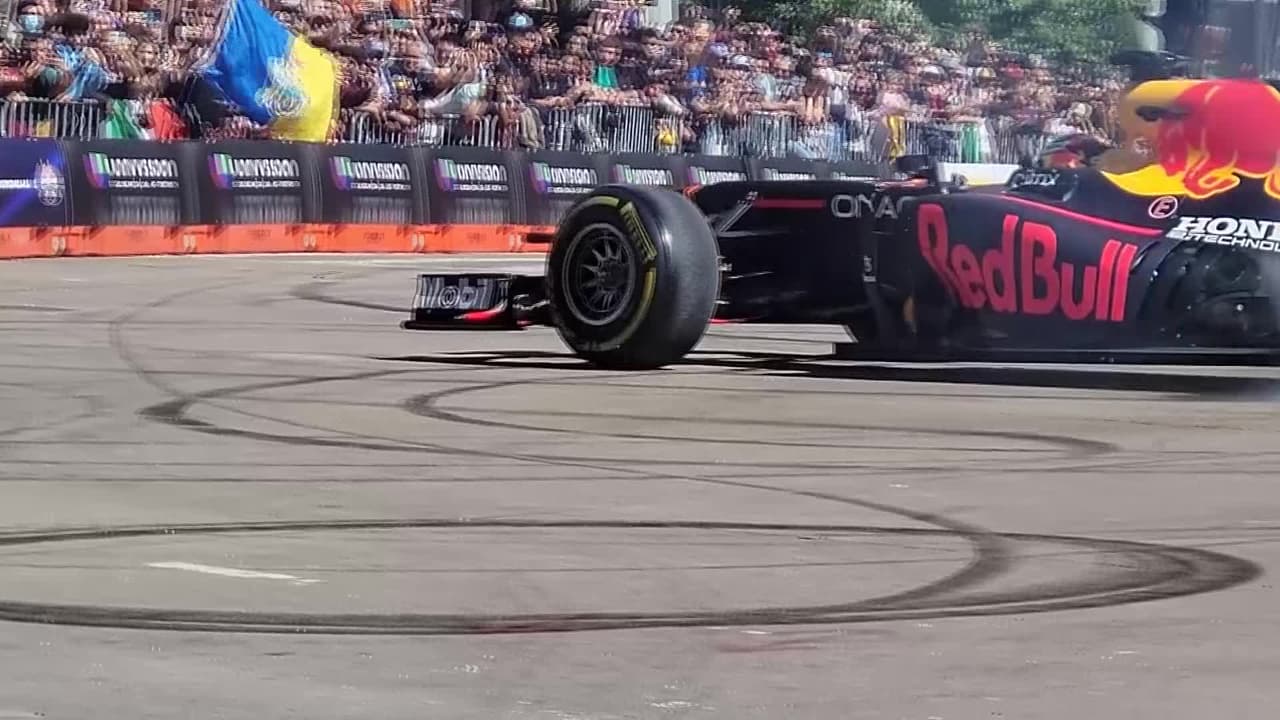 El piloto mexicano de Red Bull ofreció una exhibición ante miles de aficionados que asistieron en las calles del centro de Dallas.