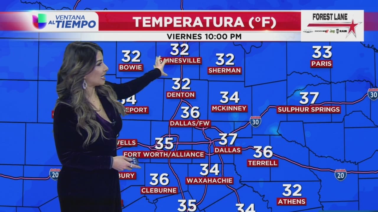 Las temperaturas máximas en Dallas se ubicarán en los 44 grados Fahrenheit y mínimas en los 30 grados. La lluvia llegará a partir de las 3:00 pm, pero será ligera.