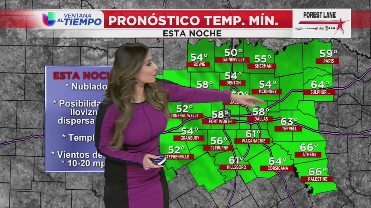 Se espera que se aleje el sistema de alta presión que se ha presentado por estos últimos días y que las temperaturas estén entre los 56 y 73 grados Fahrenheit en Dallas y sus alrededores.