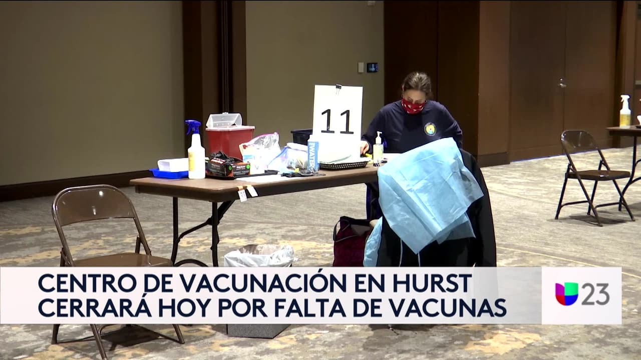 Autoridades decidieron cerrar el centro de vacunación en la ciudad de Hurst el jueves, 21 de enero porque cuentan con muy pocas dosis. Hasta el momento se desconoce por cuento tiempo permanecerá cerrado. Esta noticia está en desarrollo.