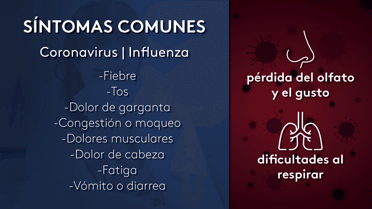 Los únicos síntomas que podrían ayudarlo a diferencia estas dos enfermedades es que con el coronavirus los pacientes tienden a perder el olfato y el gusto y pueden sufrir dificultades al respirar.