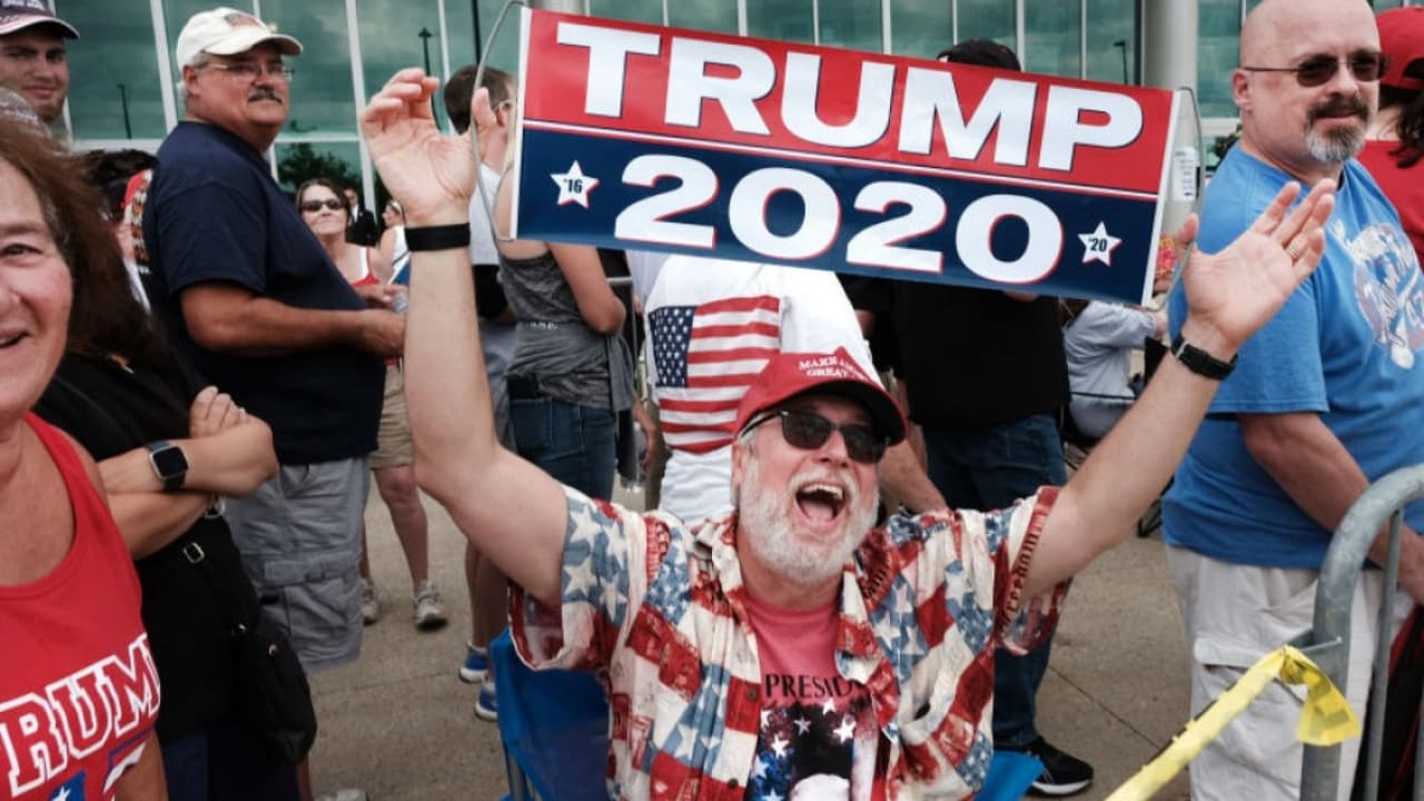 Con música y pancartas de apoyo, cientos de personas aguardan por la llegada de Trump a Dallas