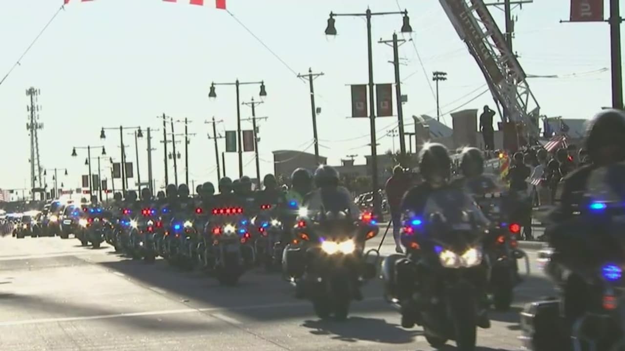 La marcha comenzó desde Little Elm y se traslada hasta una iglesia en Plano. Tanto bomberos como policías han levantado altares en memoria del detective, quien murió el pasado 17 de enero a manos de un hombre que le disparó desde una vivienda.