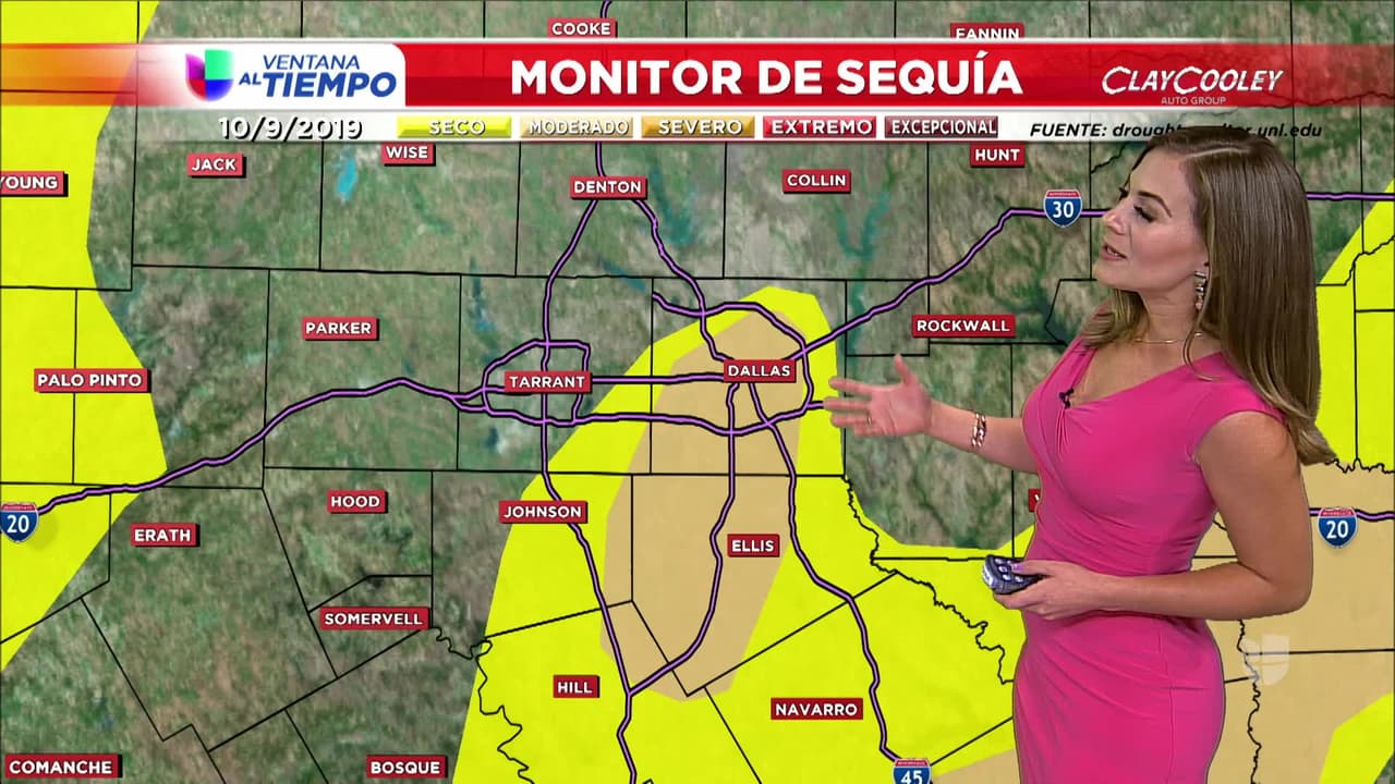 Una sequía moderada se reporta en partes de los condados Dallas y Ellis. La lluvia se hace necesaria en nuestra área y también en el estado. Basado en datos desde el 2000, Texas enfrentó uno de los períodos más extensos de sequía entre 2010-2015. Especialmente en la semana del 4 de octubre 2011, ese año, fue muy anómalo, poca lluvia y DFW tuvo 71 días con temperaturas en los tres dígitos.