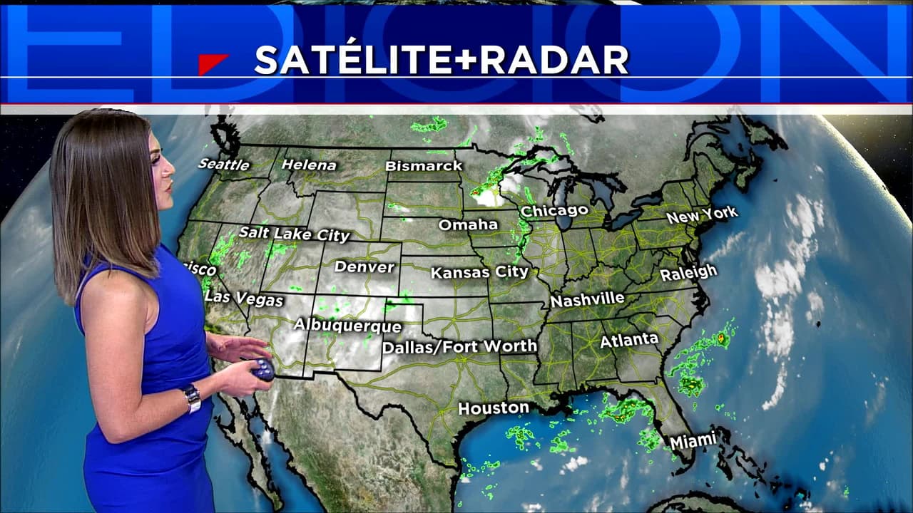 El calor extremo continúa a través del valle central de California hasta el fin de semana. La humedad monzónica continuará produciendo una amenaza de inundaciones repentina en la región de las “Cuatro Esquinas” hasta esta noche. En norte, tormentas severas serán posibles en la parte superior de los Grandes Lagos.