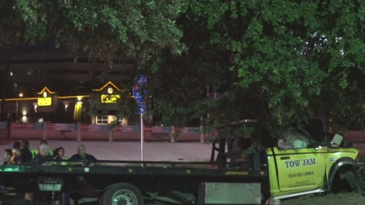Conductor de una grúa muere al chocar violentamente contra un árbol en una autopista de Dallas
