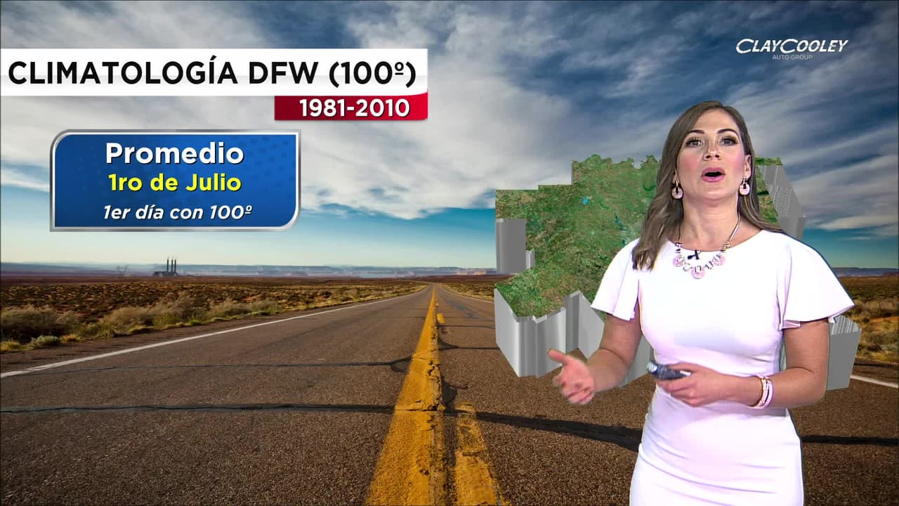 Modelos de temperaturas apuntan que el aeropuerto DFW pudiera registrar 100º mañana o al menos bordear esa cifra. Basado en una data de casi 30 años, como promedio es el 1ro de Julio el primer día del año en marcar 100º, siendo el 26 de agosto el último día. Estos datos climatológicos arrojan que agosto el mes más caliente. Manténgase hidratado y siga las recomendaciones antes calor excesivo.