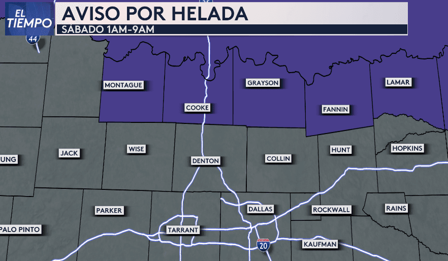 Prepare un abrigo para la mañana del sábado pues se emite el primer aviso por helada en Montague, Cooke, Grayson, Fannin y Lamar.
