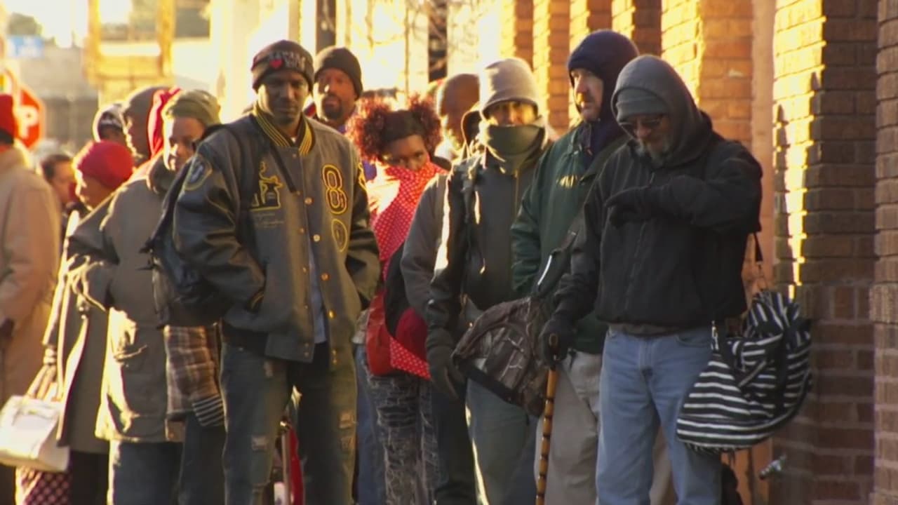 El centro de ayuda para desamparados Stewpot abrió sus puertas para un gran número de habitantes de calle para regalarles calcetines que les permitirá combatir el frío. La donación de las prendas fue hecha por una compañía privada.