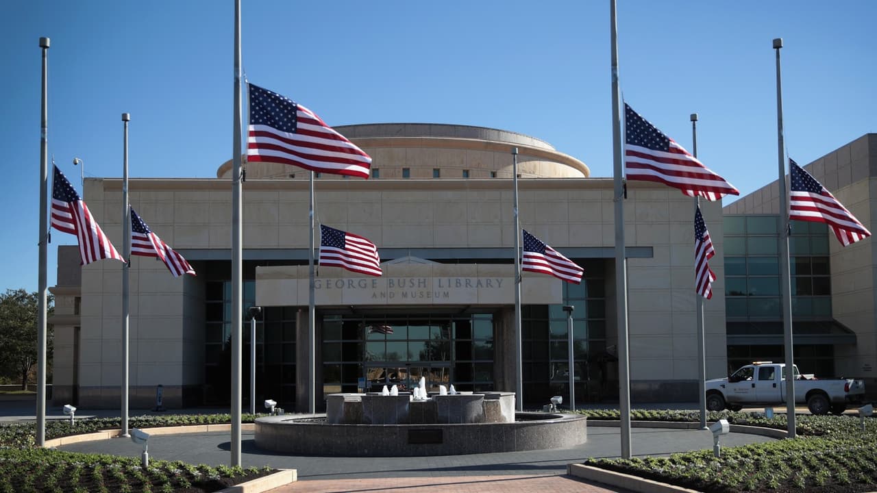 Decenas de personas acuden a la biblioteca George H. W. Bush para homenajear al fallecido exmandatario