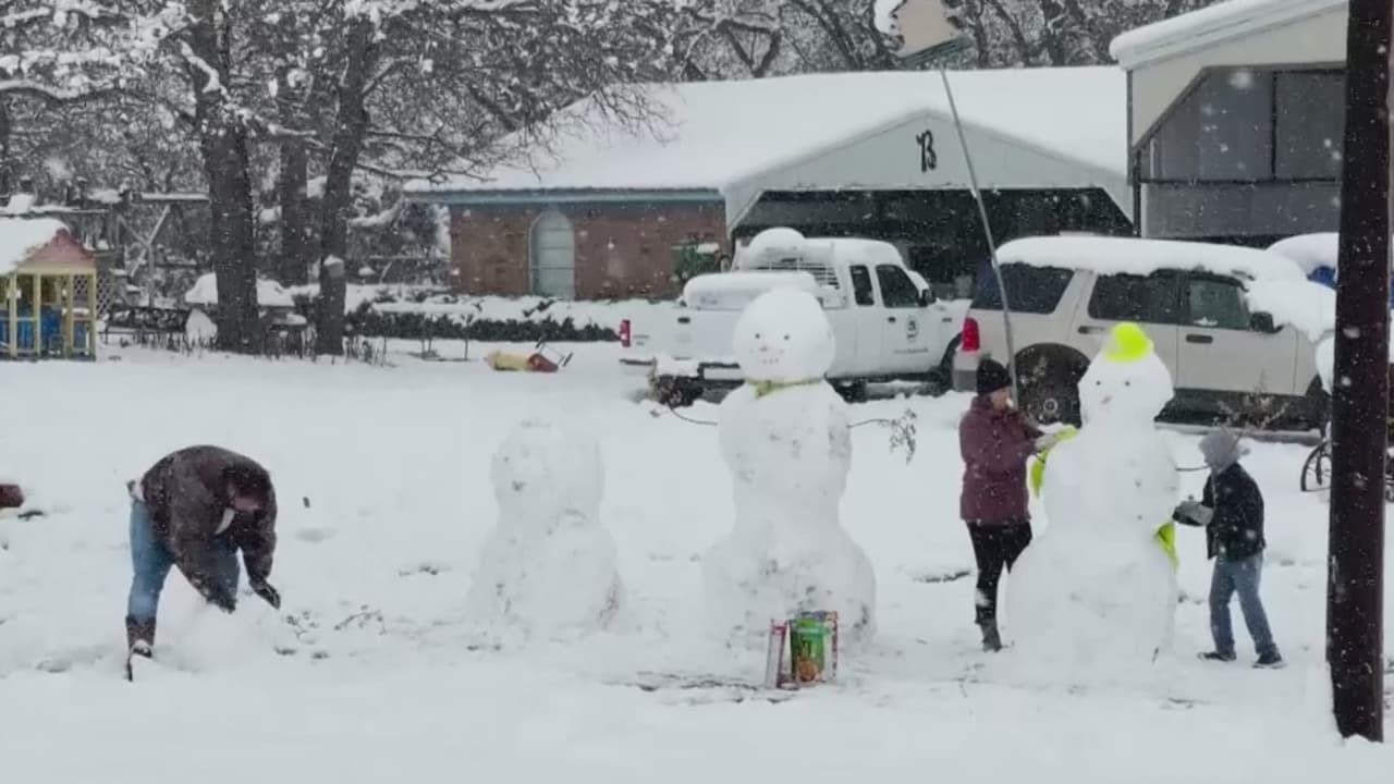 La nevada que se registró en esta área de Texas desde la madrugada del domingo y dio pie para que muchos practicaran actividades que no suelen poder hacer. Por otro lado, las autoridades piden a los conductores tener precaución en las vías y las clases fueron suspendidas hasta el próximo martes 12 de enero.