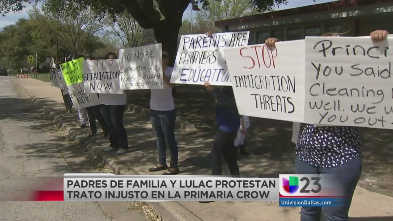 Un grupo de padres de familia y miembros de LULAC realizaron una protesta afuera de la primaria Corinne Crow porque una profesora maltrata física y verbalmente a los alumnos