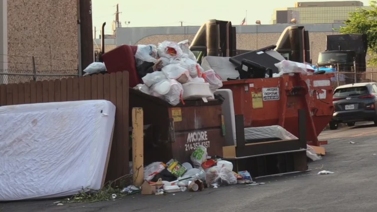 Denuncian que el basurero de un complejo de casas en el norte de Dallas está desbordado y que nadie responde