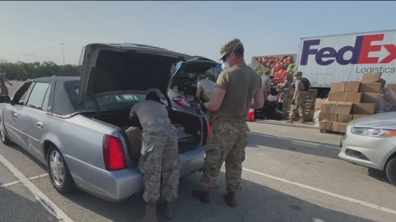 Distribuyen alimentos gratis a cientos de familias en el estadio Globe Life Park de Arlington