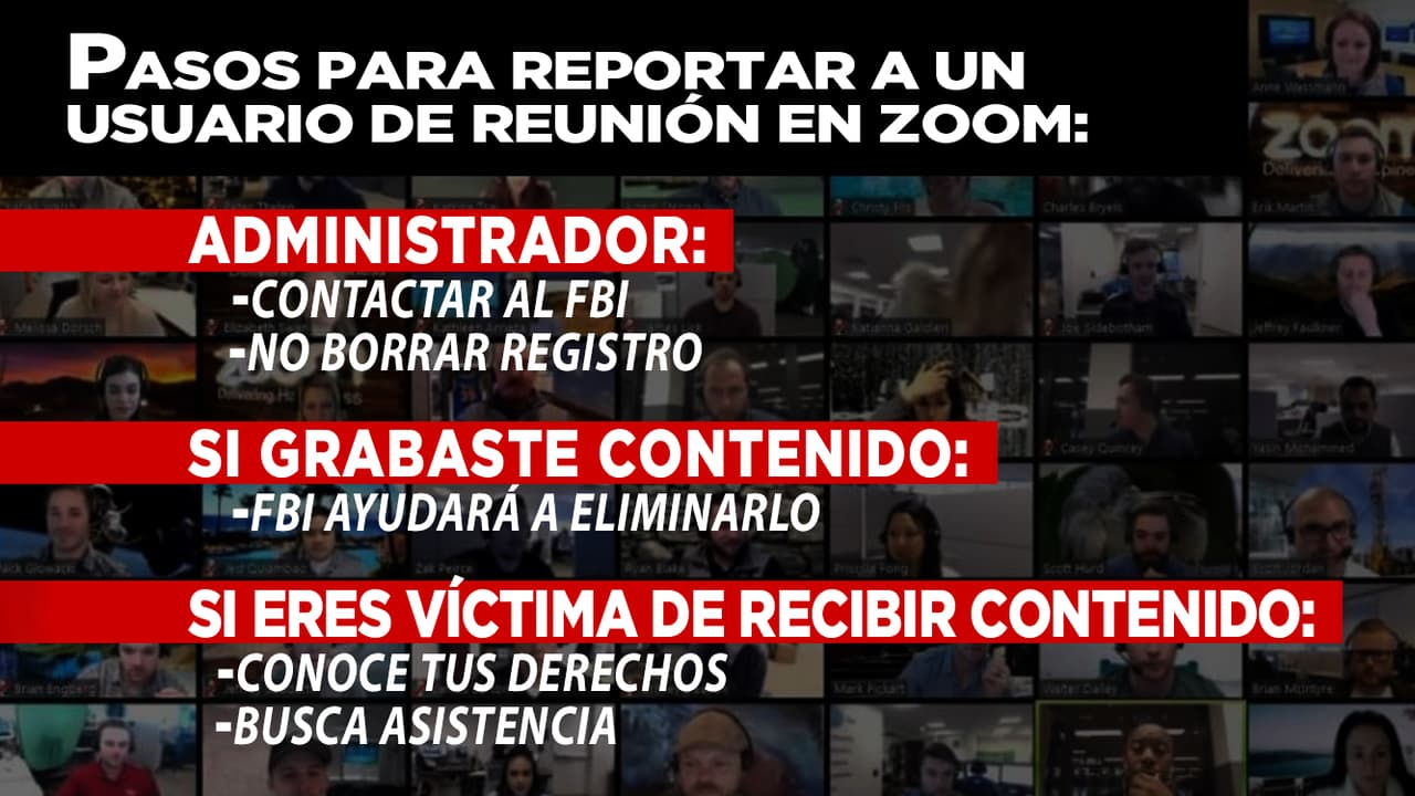 Según el FBI, en los últimos meses durante la pandemia del coronavirus, han recibido más de 240 reportes de incidentes en los Estados Unidos donde participantes de otros países ingresan a las juntas virtuales para compartir videos de abuso sexual infantil, una actividad considerada como un crimen violento.