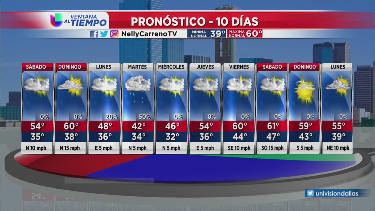 Las temperaturas van a bajar mucho en el norte de Texas con las mínimas en los 30s. El fin de semana aumentará a los 50s y 60s.