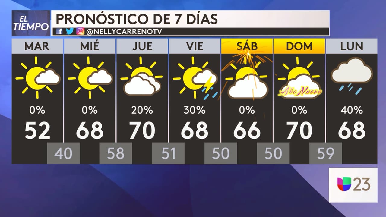 La noche de este lunes las temperaturas volverán a bajar, en el Metroplex alcanzaremos alrededor de los 26 grados, en otras zonas estarán un par de grados más abajo, prepara todo en casa. Nuestra meteoróloga Nelly Carreño nos comenta qué nos espera los próximos días. Infórmate y comparte.