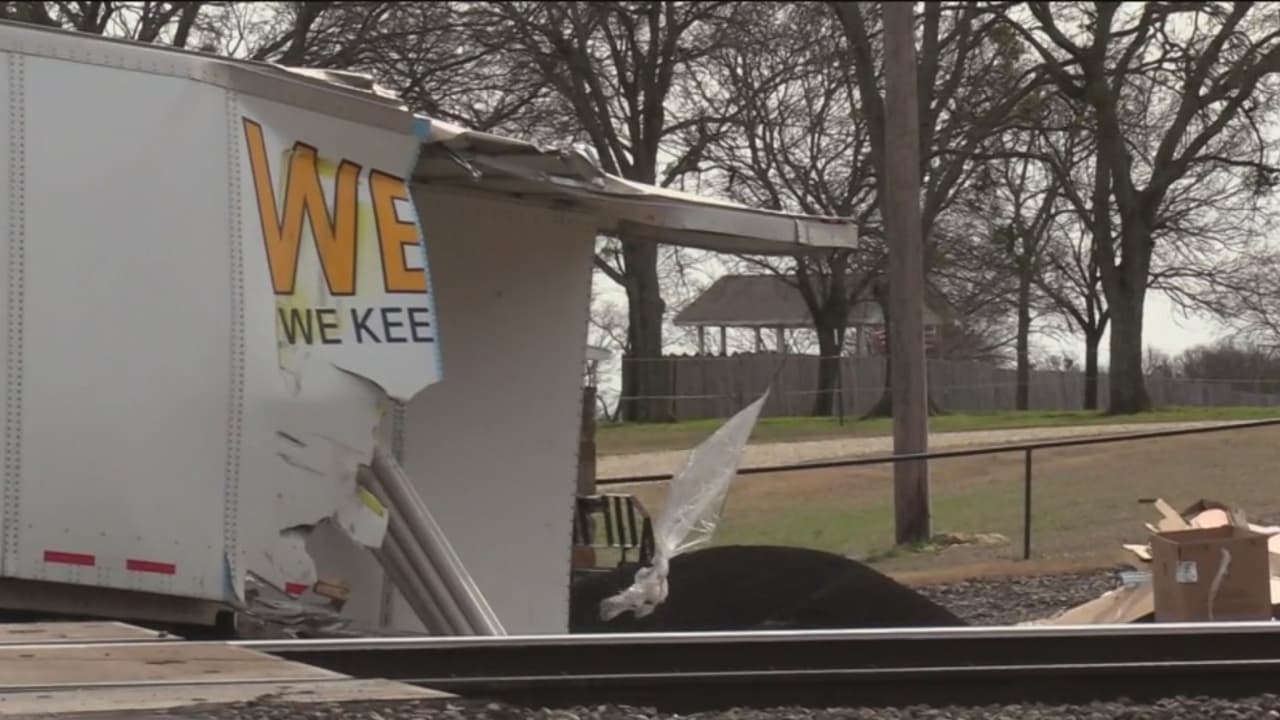 El impactante choque entre un tren y un camión de 18 ruedas que quedó atascado en medio de las vías