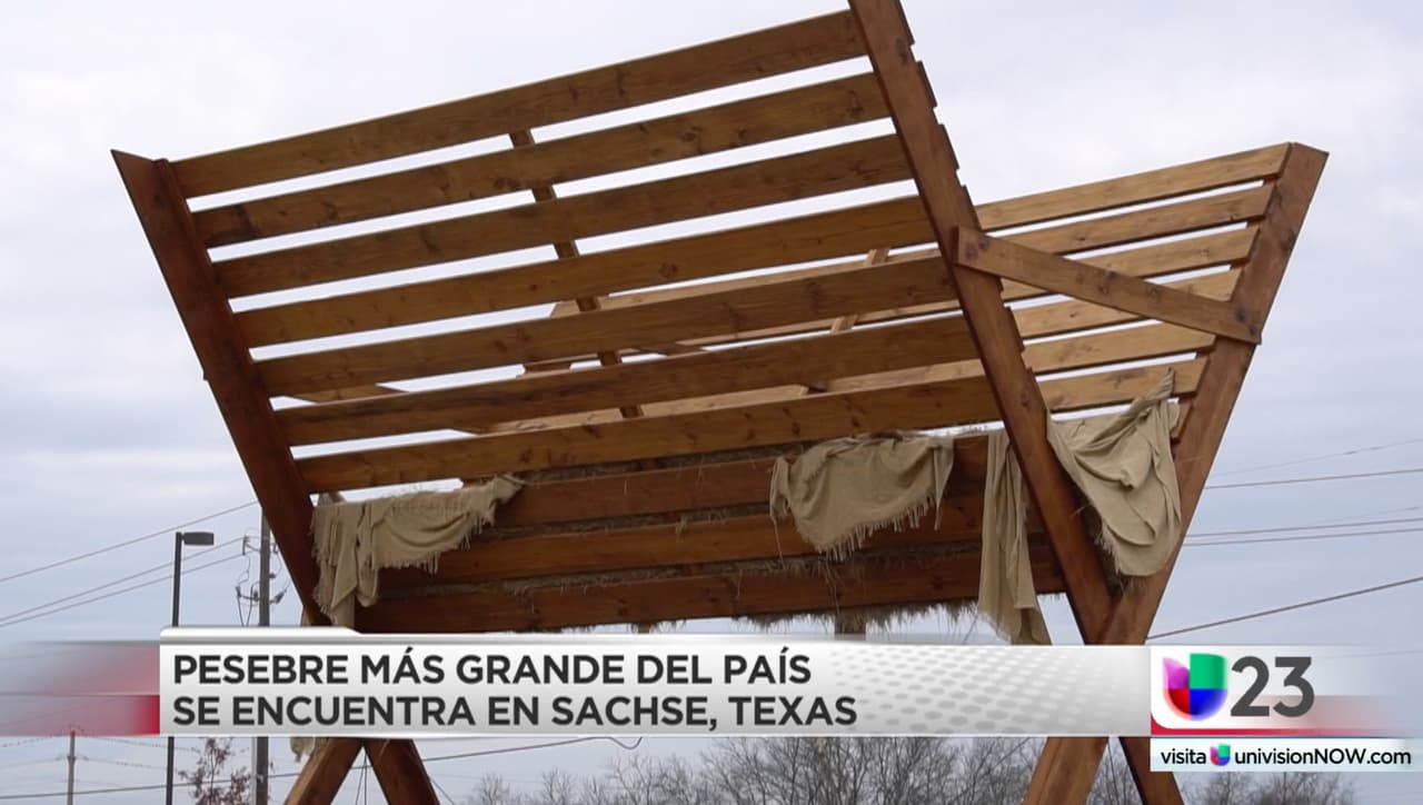 Ubicado en la Iglesia Northplace en Sachse el pesebre pesa 200 libras de madera y paja.