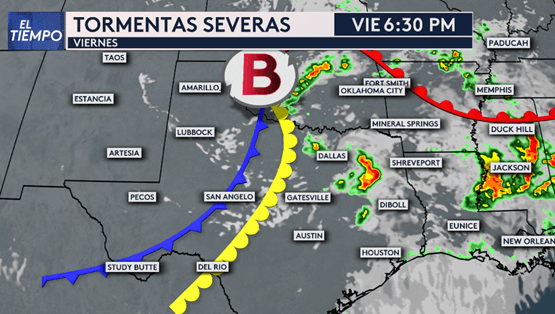 Se espera que la línea seca se ubique a lo largo o justo al oeste de la autopista I-35. Dallas-Fort Worth hacia el este es la zona favorecida para el desarrollo de tormentas severas, si la capa atmosférica lo permite.
