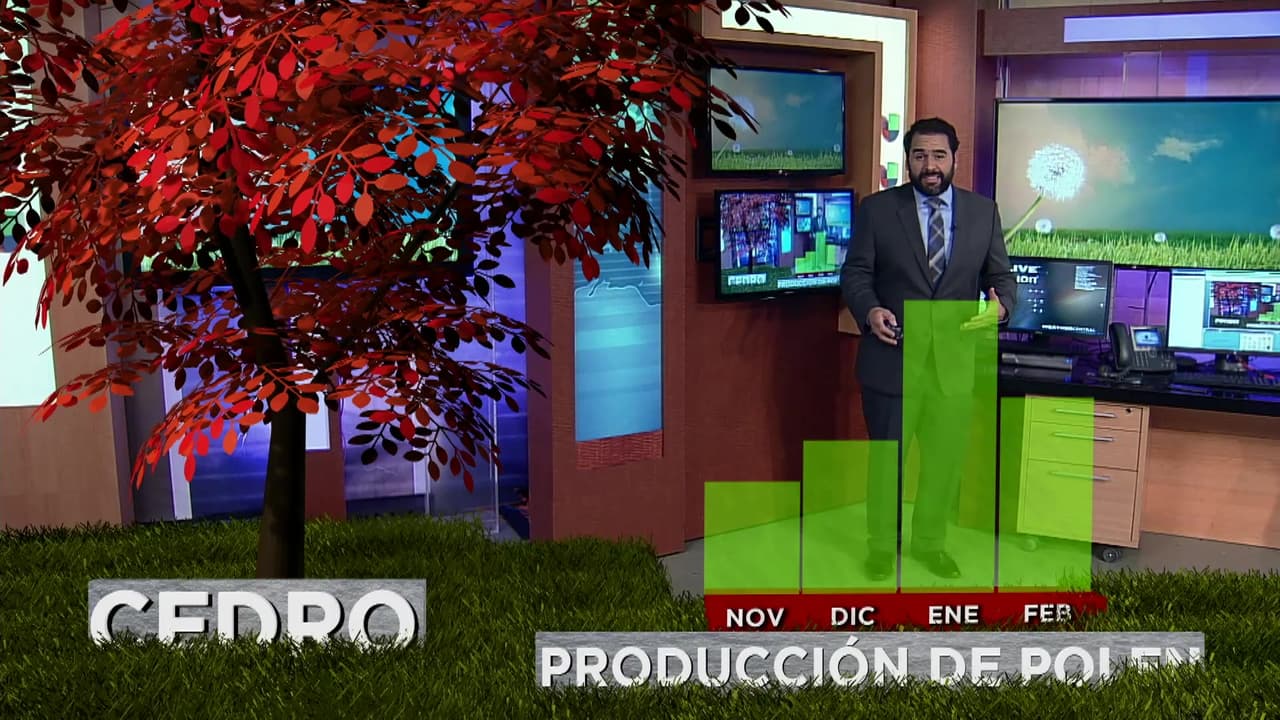 El ambiente excepcionalmente cálido de los últimos meses ha acelerado la producción de polen asociado al cedro un árbol abundante en el norte de Texas ¿cuándo bajará? cuando llegue la lluvia. Meteorólogo Albert Martínez