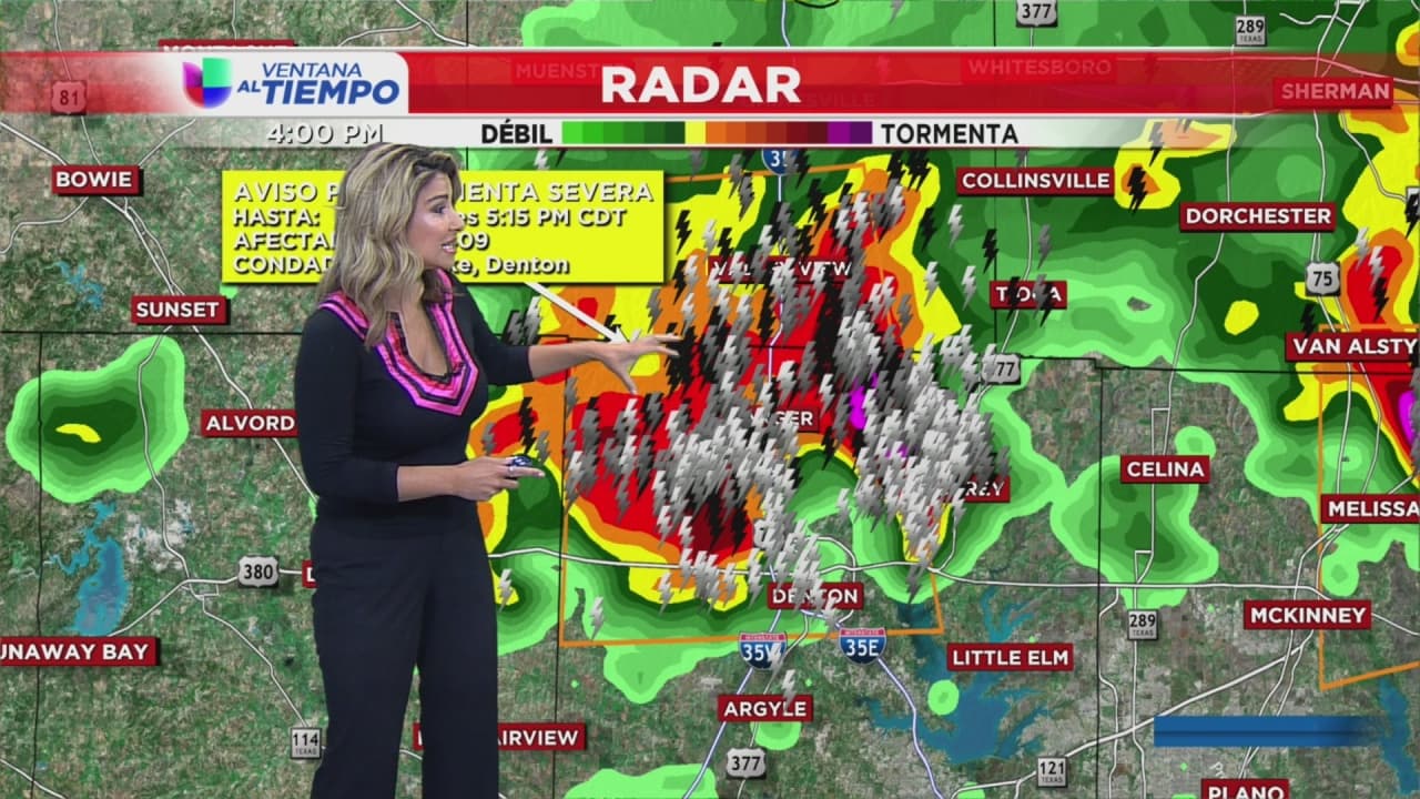 Nuestra meteoróloga Nelly Carreño advierte que las tormentas podrían afectar a los condados de Cooke y Denton y provocar granizo del diámetro de una pulgada.