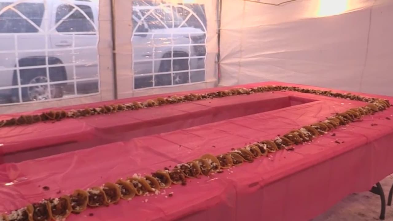 La original rosca mide más de 70 pies de largo y se utilizaron casi 5,000 tacos para crearla. El responsable de su creación espera el próximo año romper un récord mundial.