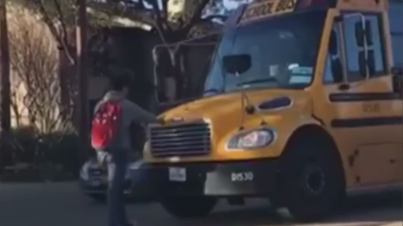 En video: Chofer de un autobús escolar desafía a un estudiante que se paró en frente del vehículo