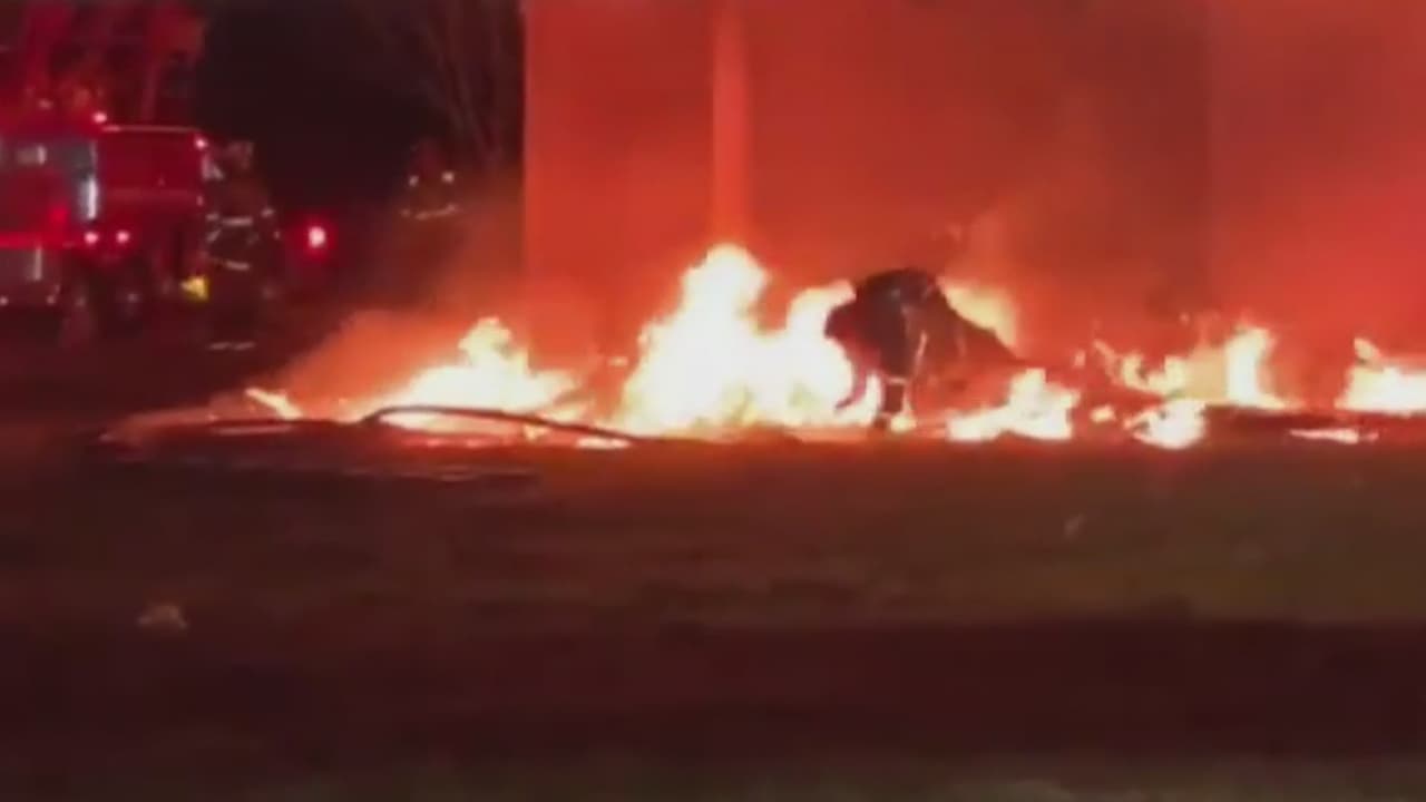 En video: Un bombero escapa de un incendio luego de que le cayera parte de una estructura en llamas encima