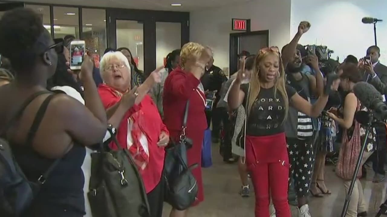 Luego de escuchar la condena a 10 años de prisión que deberá cumplir la exoficial, un grupo de personas inconformes salió a los pasillos de la corte del condado para expresar su rechazo. Este miércoles a las 6:30 pm se llevará a cabo una manifestación a las afueras del tribunal.