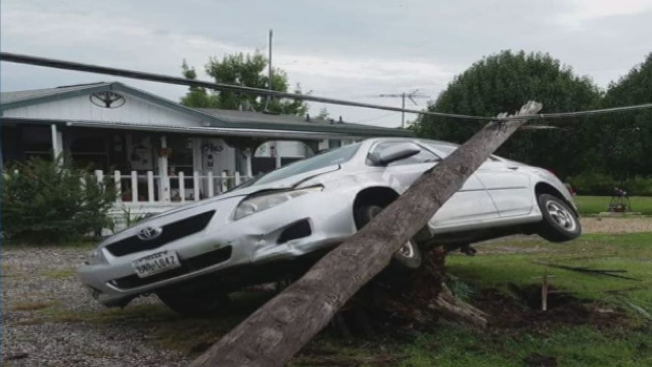 Este auto por poco se parte durante un aparatoso accidente en Quinlan