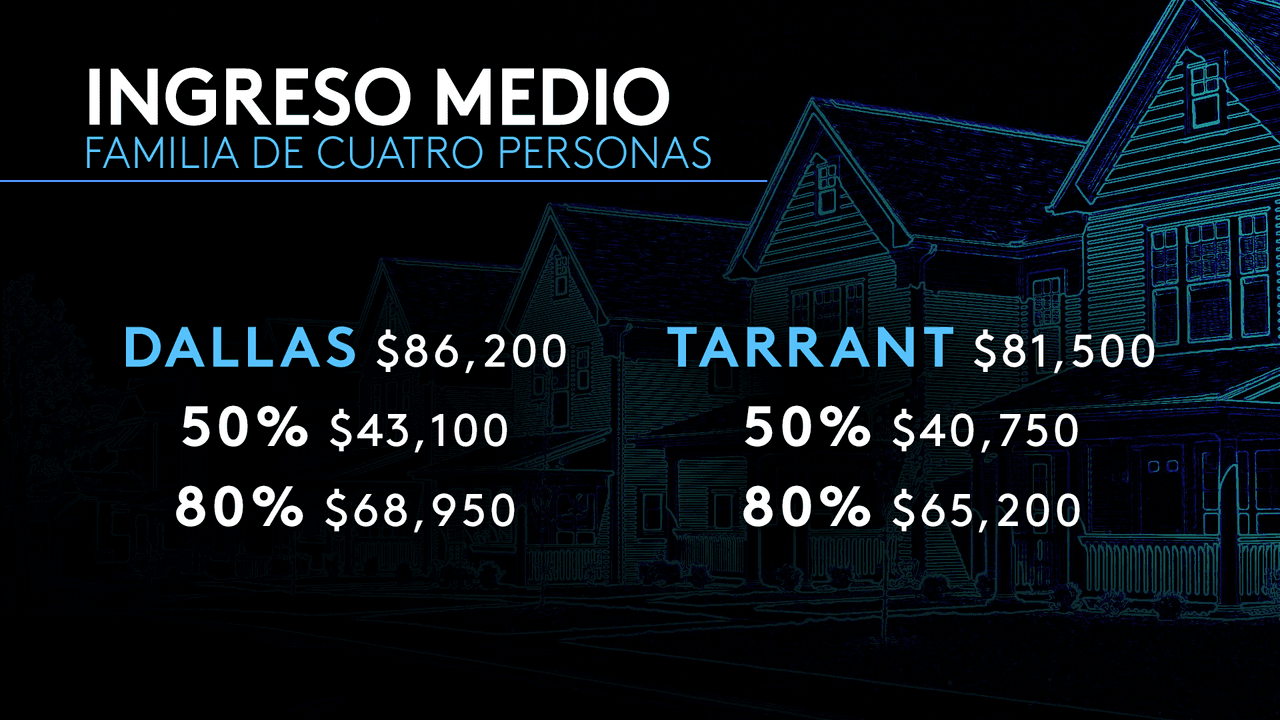 El Estado de Texas está pidiendo que las personas no ganen más del 80% del ingreso medio de donde viven. La información está en su página web, pero los residentes de los condado de Dallas y Tarrant no deben de pasar estos montos: