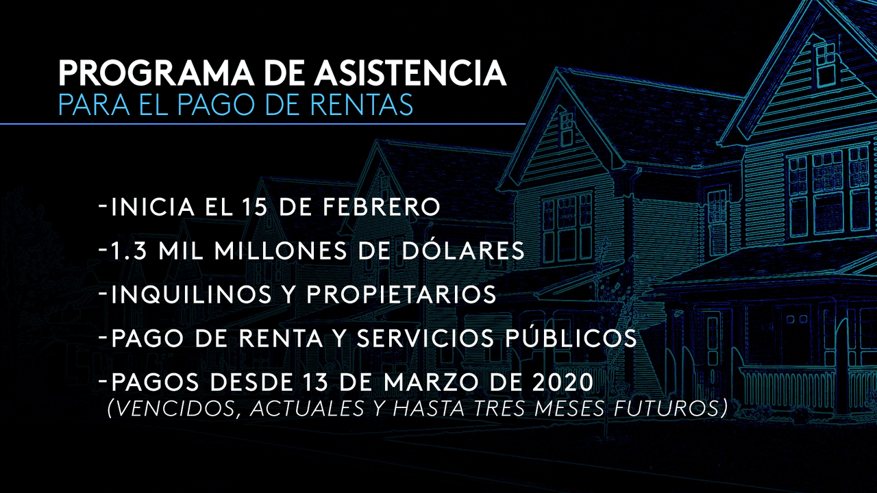 Se trata de un programa que estaría iniciando el próximo 15 de febrero y que contempla fondos por cerca de 1,300 millones de dólares para apoyar tanto a inquilinos como a propietarios que no han recibido dinero de sus arriendos en medio de la crisis desatada por la pandemia.