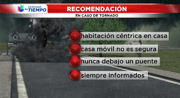Por favor esté preparado para tiempo severo mañana, su seguridad y la de su familia es lo más importante. Aquí tienen algunas recomendaciones en caso de tornado.