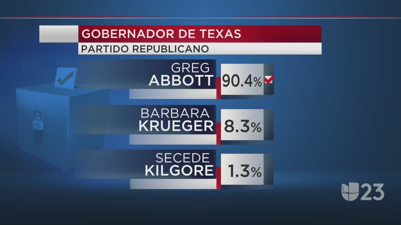 El actual gobernador Greg Abbott buscará la reelección por el partido republicano. Mientras tanto, los demócratas irán a una segunda vuelta para elegir a Lupe Valdez o Andrew White.