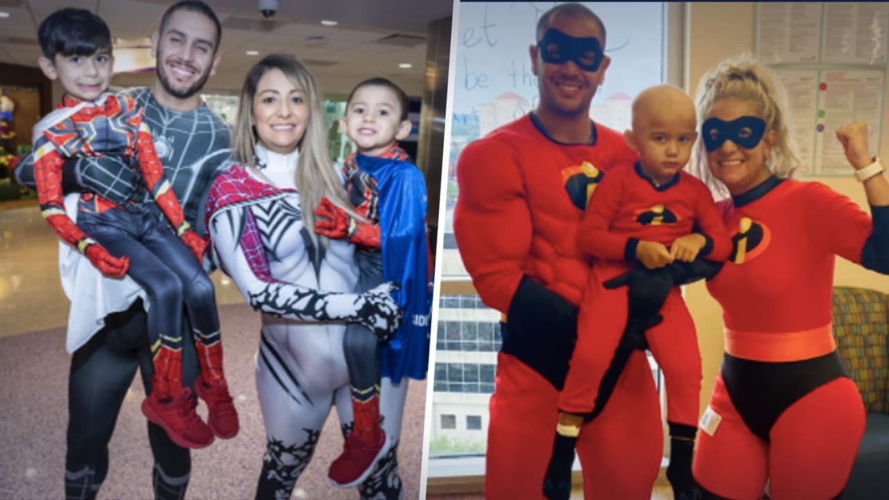 Familia hispana de niño de 3 años con leucemia, se visten de superhéroes para sesiones de quimioterapia