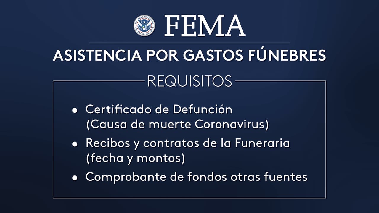 DALLAS, Texas .- La pandemia acabó con la vida de millones de personas, dejando desconsuelo en sus familiares y FEMA explica que aunque no puede cambiar lo ocurrido, puede ayudar a aliviar la presión y la carga económica que implican los servicios funerarios.